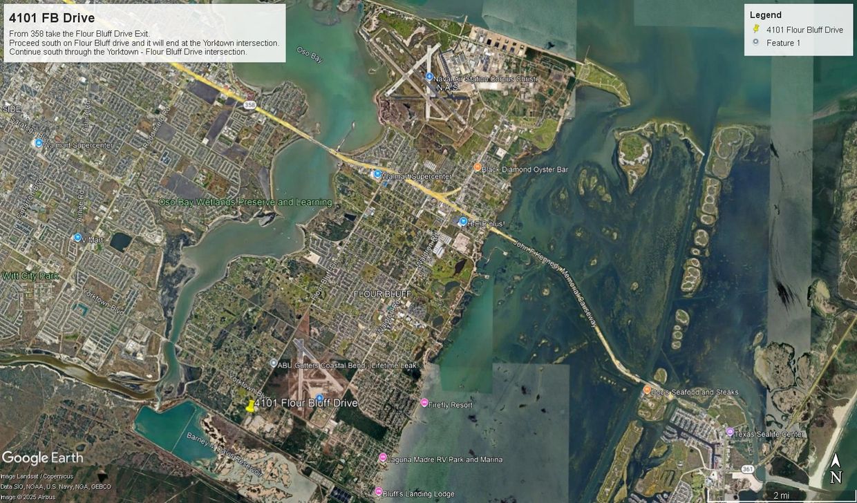 From 358 take the Flour Bluff drive road south. It is a straight shot south to 4101 Flour Bluff Dr Corpus Christi TX 78418